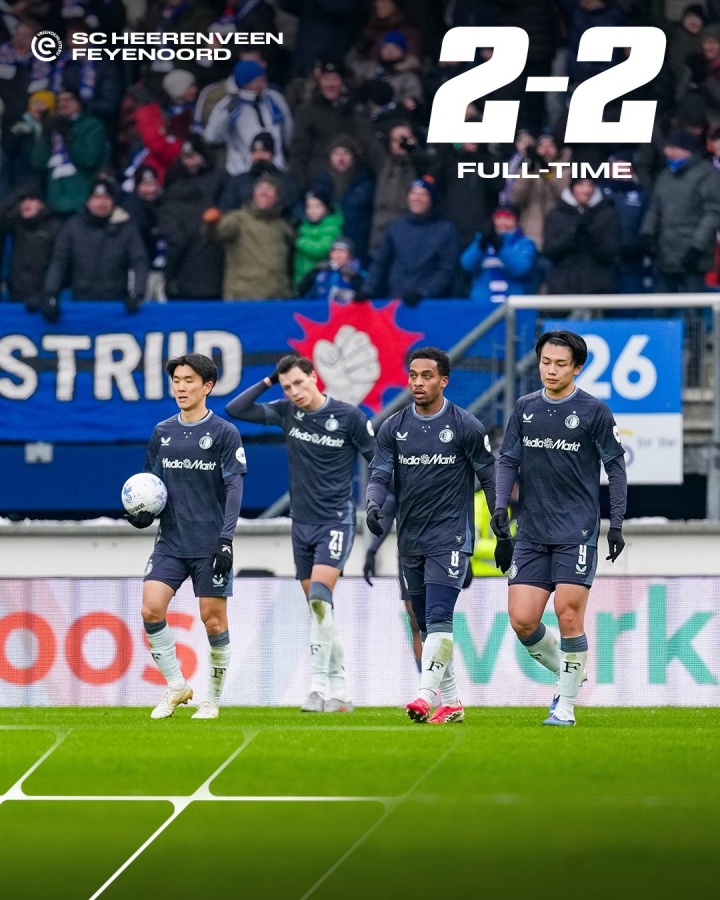 01月12日讯 荷甲第18轮,费耶诺德2-2战平海伦芬,荷甲3轮不胜,近7轮联赛仅2胜丢了11分。